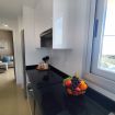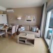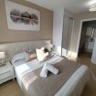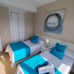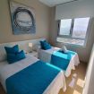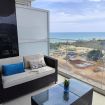 Apartamento con vista al mar en primera línea de playa. Ocupación de hasta seis personas, con dos habitaciones, dos baños, dos piscinas y tres jacuzzis comunitarios, jardín, parking privado y parque infantil.